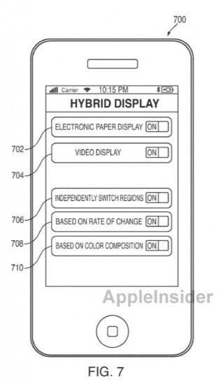 Mas uma nova patente da empresa pode solucionar esse problema. A ideia é de um display híbrido com a habilidade de alternar entre a alta de resolução de cores que estamos acostumados no iPhone e iPad, e o papel eletrônico E-ink, popular no Kindle, de acordo com a necessidade do usuário.