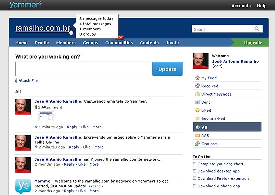 Pois bem, o conceito do Twitter pode ser aproveitado internamente por meio de serviços como o Yammer, (www.yammer.com) que cria uma estrutura de microblog apenas para as pessoas que possuam e-mail corporativo, ou seja, apenas pessoas que tenham um email do tipo “fulano@nomedaempresa.com.br”.