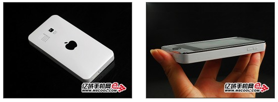 Como qualquer bom clone chinês, este vem com dois slots para SIM cards, suporte a Java e rádio FM integrado. Sua tela, de 3,2 polegadas, é controlada por uma stylus. A maçãzinha falsa, na traseira, dá um toque especial no fake.