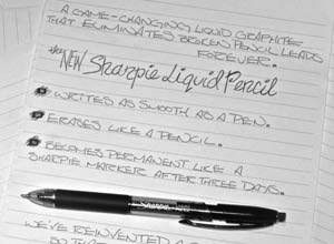A empresa Sharpie criou o lápis líquido “sharpie”, cujo grafite pode ser apagado em até três dias.