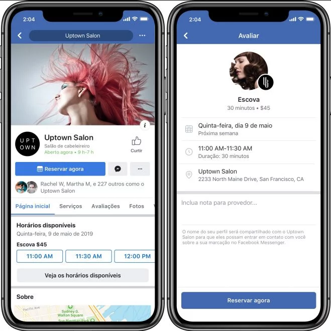 Já o recurso Agendamentos permite aceitar compromissos on-line e enviar lembretes aos clientes por meio do Messenger ou mensagem de texto (SMS). Também é possível personalizar o menu de serviços da empresa, exibir a disponibilidade e aceitar e gerenciar todos os agendamentos diretamente da Página comercial. A nova ferramenta é gratuita para todas as empresas no Facebook e Instagram, incluindo os lembretes via Messenger e SMS.