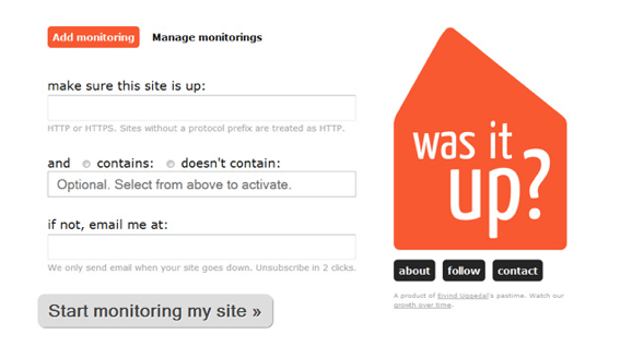 Então você é um empreendedor iniciante na internet, mas ainda não tem recursos ou equipe para monitorar se seu site está sempre no ar? Se você não puder pagar por serviços mais completos, como o chartbeat, o “Was it Up?” pode ser a solução. Ele monitora gratuitamente o “status” do seu site e avisa se detectar algum problema.