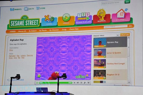 Na conferência, houve demonstração de personalização de conteúdos na televisão, a partir do exemplo de que o filho de Chandra gosta da série infantil Sesame Street (Vila Sésamo, na versão norte-americana). Com o Google TV, ele pode centrar o que vai assistir nos personagens favoritos, por intermédio do site oficial do seriado.