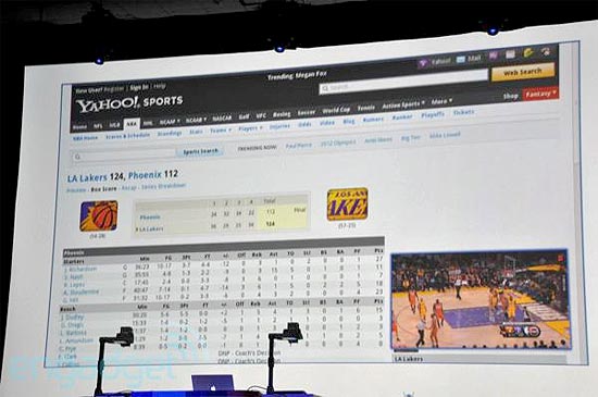 Outra função simultânea apresentada pelo Google é voltada ao esporte: no exemplo, um jogo de basquete figura em uma tela secundária, enquanto o usuário navega pela tabela de resultados do Yahoo! no browser, em primeiro plano. “É apenas uma ferramenta simples”, comentou Chandra.