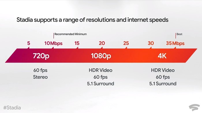 Desde o anúncio da plataforma, no ano passado, a ideia da Google é consumir o menor pacote possível de dados para entregar performance de máquinas de última geração. Para conseguir jogar é preciso ter uma conexão com pelo menos 10 mbps de download e 1 mbps de upload, com resolução 720p e 60 quadros por segundo e som Surround 5.1.