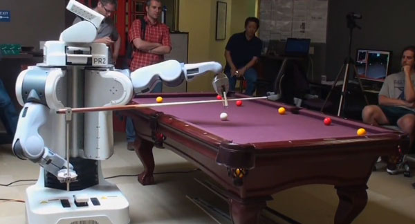 A culpa é do PR2, que aparece na foto acima, e dos malucos da Willow Garage, que ensinaram o humanóide a segurar tacos, identificar cores de bolas, pensar nas inúmeras possibilidades de cada lance e, enfim, encaçapar como um campeão do esporte (e dos bares da vida).