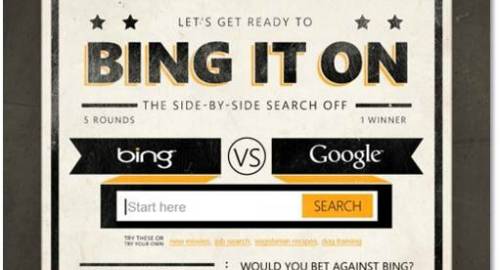 Para o desafio aberto, internautas podem acessar a página Bing It On, na qual farão cinco buscas. Os resultados serão mostrados lado a lado, sem publicidade e sem recursos adicionais – como o Open Graph do Google e a barra social do Bing. Basta escolher qual agradou mais e, no final, é mostrado o vencedor.