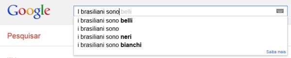 Mais uma vez, uma pesquisa estrangeira exibe um termo referente à beleza brasileira: “belli” ou “belos”. As outras sugestões, no entanto, mostram que os italianos apresentam algumas dúvidas quanto à cor da nossa pele: “os brasileiros são negros” e “os brasileiros são brancos”. É a miscigenação que só o Brasil sabe ter despertando interesse (e certa confusão) nos italianos.