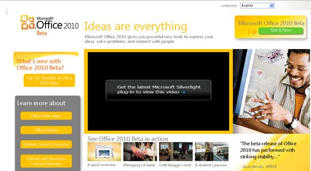 A versão 2010 do Office aposta nas aplicações web, sem restrições de edição, para concorrer diretamente com o Google Docs, por exemplo. O site ainda afirma que os PCs com Windows que serão vendidos a partir de junho virão com o pacote pré-instalado.