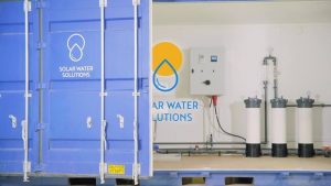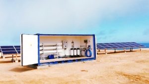 Em uma cidade costeira na Namíbia, no sul da África do Sul, um pequeno contêiner de carga perto da praia é acompanhado por uma fileira de painéis solares. Dentro da estrutura, está sendo testada uma nova tecnologia capaz de transformar a água salgada do oceano Atlântico em água potável, usando apenas energia solar.