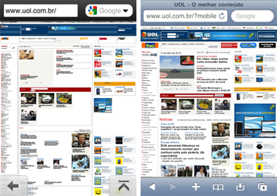 O maior problema referente à navegação do Opera Mini – algo que manterá grande parte dos usuários no Safari – é a exibição das páginas, que nem sempre é correta.  Ao abrir o site do UOL, por exemplo, a formatação de algumas áreas do site é mostrada de forma incorreta, enquanto no Safari tudo é exibido corretamente.