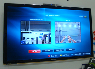 Os TVs LCD-LED Samsung das séries 7000 (40” e 46”/programados para chegar ao mercado em abril) e 8000 (40”, 46”, 55” e 65”/programados para maio) trazem outra característica bem interessante, além da compatibilidade com imagens 3D. Os seis modelos estarão preparados para acessar o Skype.