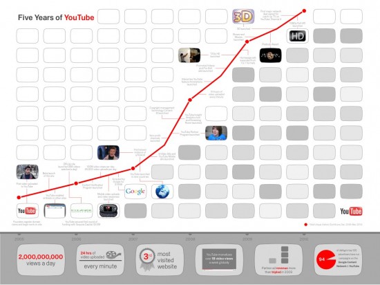 O YouTube é hoje o terceiro site mais acessado no mundo de acordo com o Alexa, está em 23 países (traduzido em 24 idiomas), possui uma média de 15 minutos de visualização de vídeos por pessoa diariamente, recebe mais de 24 horas de vídeos por minuto e 45 milhões de impressões da sua página inicial todos os dias.